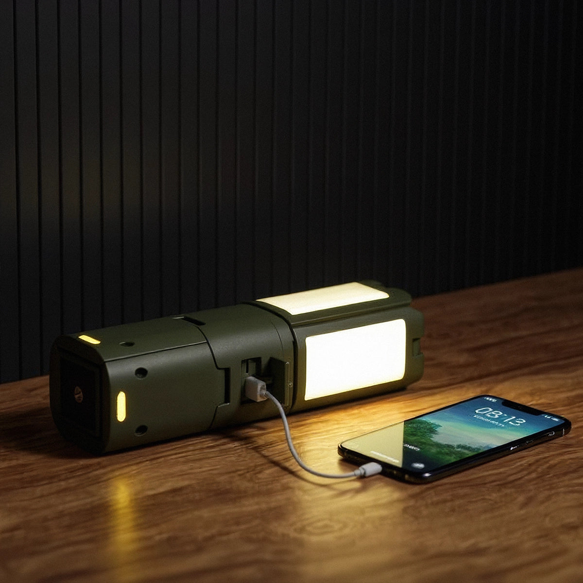 Materiaalit: strong > ABS, PC, alumiiniseos p >< p >< strong > Lisäominaisuudet:  strong > Toimii myös varavirtalähteenä, kallistettavat paneelit monisuuntaiseen valoon p >